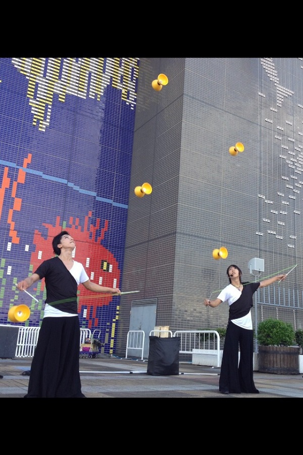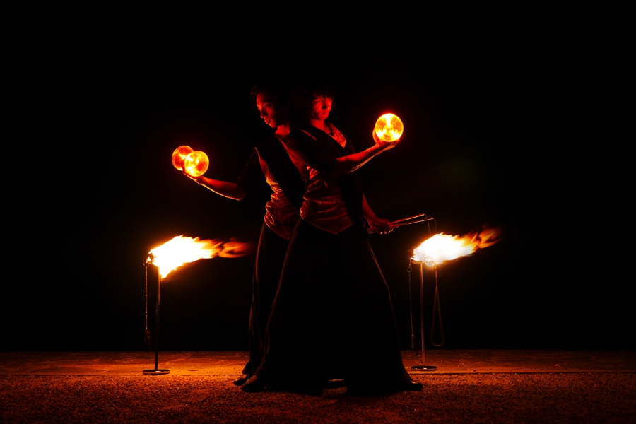 息の合った見事なディアボロさばきは必見!炎を使った派手なパフォーマンスも